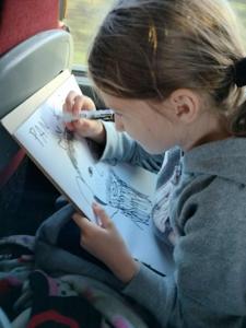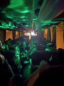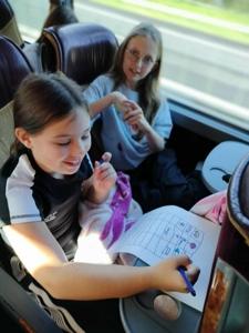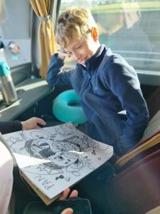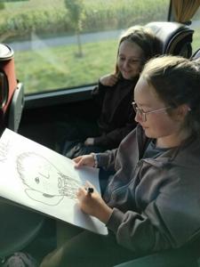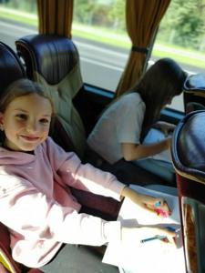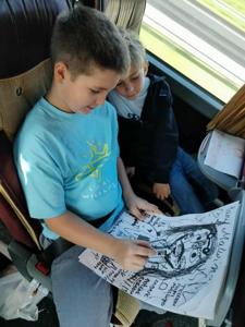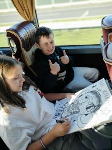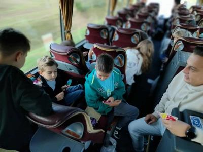 Również podróż autokarem upłynęła w radosnej atmosferze. Uczniowie rysowali zabawne portrety swoich wychowawców, grali w gry karciane, a w tle rozbrzmiewała składanka muzyczna przygotowana przez samych uczestników. Nie zabrakło wspólnego śpiewania i dobrej zabawy.