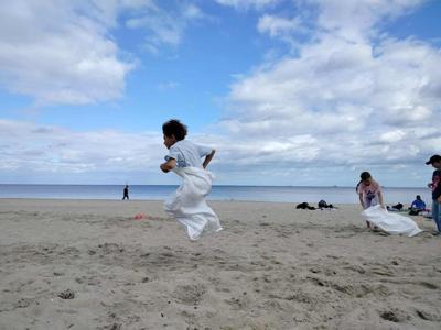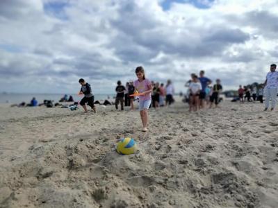 Na plaży czekało wiele atrakcji – gry i zabawy ruchowe, wyścigi drużynowe oraz budowanie zamków z piasku, które rozbudziło sporo kreatywnych pomysłów. Dzieci chętnie ze sobą współpracowały i cieszyły się możliwościami morskiego wybrzeża.