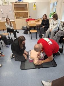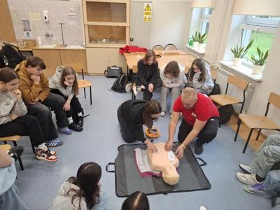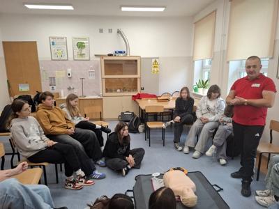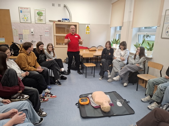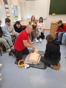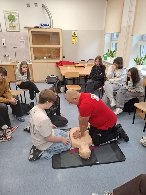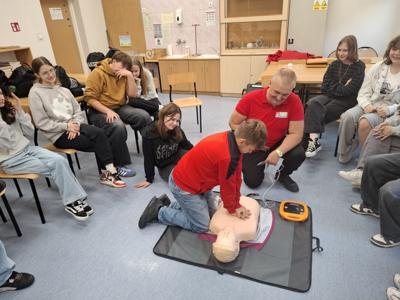 Oprócz wiedzy teoretycznej uczniowie pod jego fachowym okiem wykonali praktyczne ćwiczenia resuscytacji krążeniowo-oddechowej.