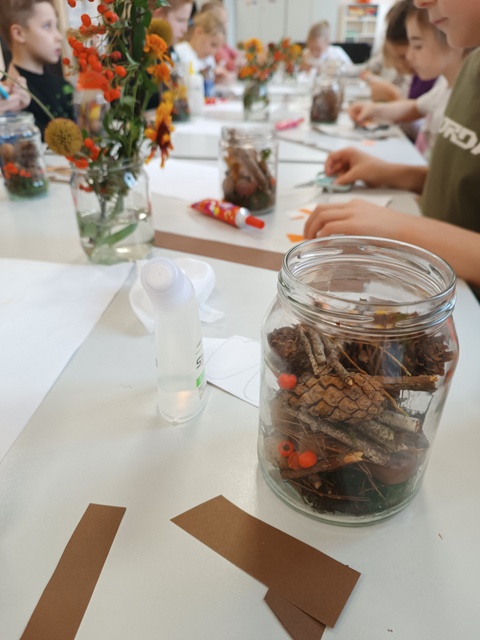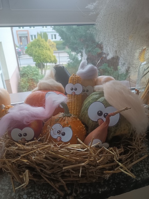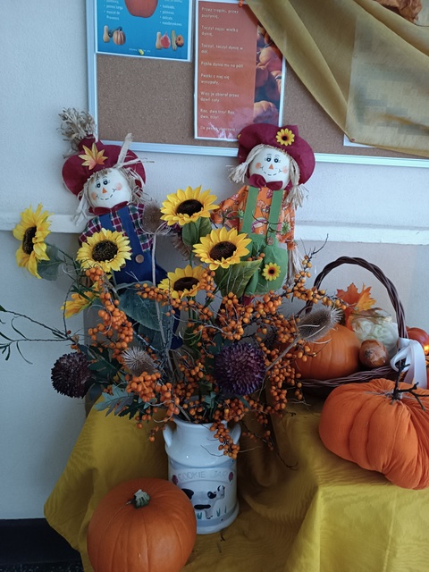 Uczniowie przygotowali wystawę "Zwierzaki-Cudaki", wzięli udział w grze szkolno-terenowej (1 kl.), tworzyli własny "Las w słoiku" (kl. 2) oraz wykonali dynie z papieru (kl.3). Było kolorowo, radośnie i bardzo pomarańczowo.