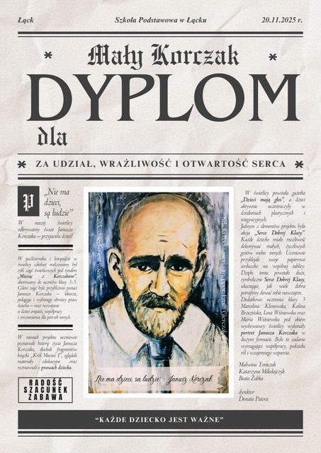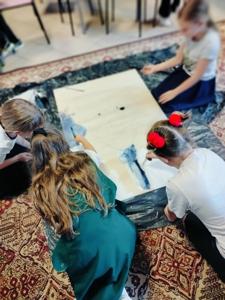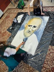 Dodatkowo uczennice klasy III  - Marcelina Klonowska, Kalina Brzezińska, Lena Wiśniewska oraz Maria Wiśniewska - pod okiem wychowawcy świetlicy wykonały portret Janusza Korczaka w dużym formacie. Było to zadanie wymagające współpracy, podziału ról i wzajemnego wsparcia.