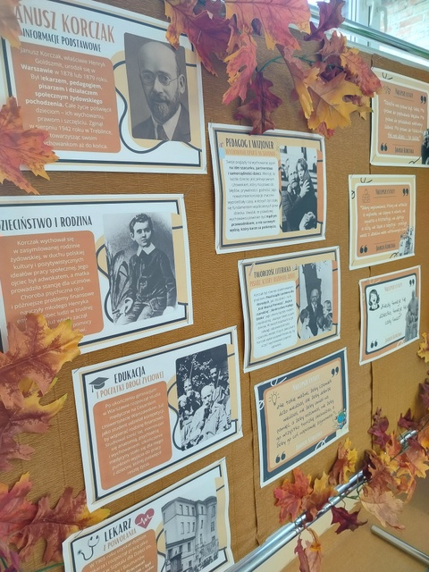Na jednym z korytarzy została zamieszczona jesienna gazetka o Korczaku.